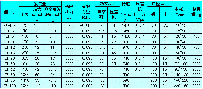 SK型水环真空泵主要用来抽除空气和其它有一定腐蚀性,不溶于水,允许含有少量粉尘的气体。广泛用于食品、纺织、医药、化工等行业的真空蒸发、浓缩、送料、脱水、干燥等工艺过程中。该系列泵具有结构紧凑,使用可靠,装拆方便,维修简单等特点。