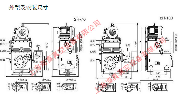 除老式H-150外,电机均置于泵的上方,结构紧凑占地面积少。