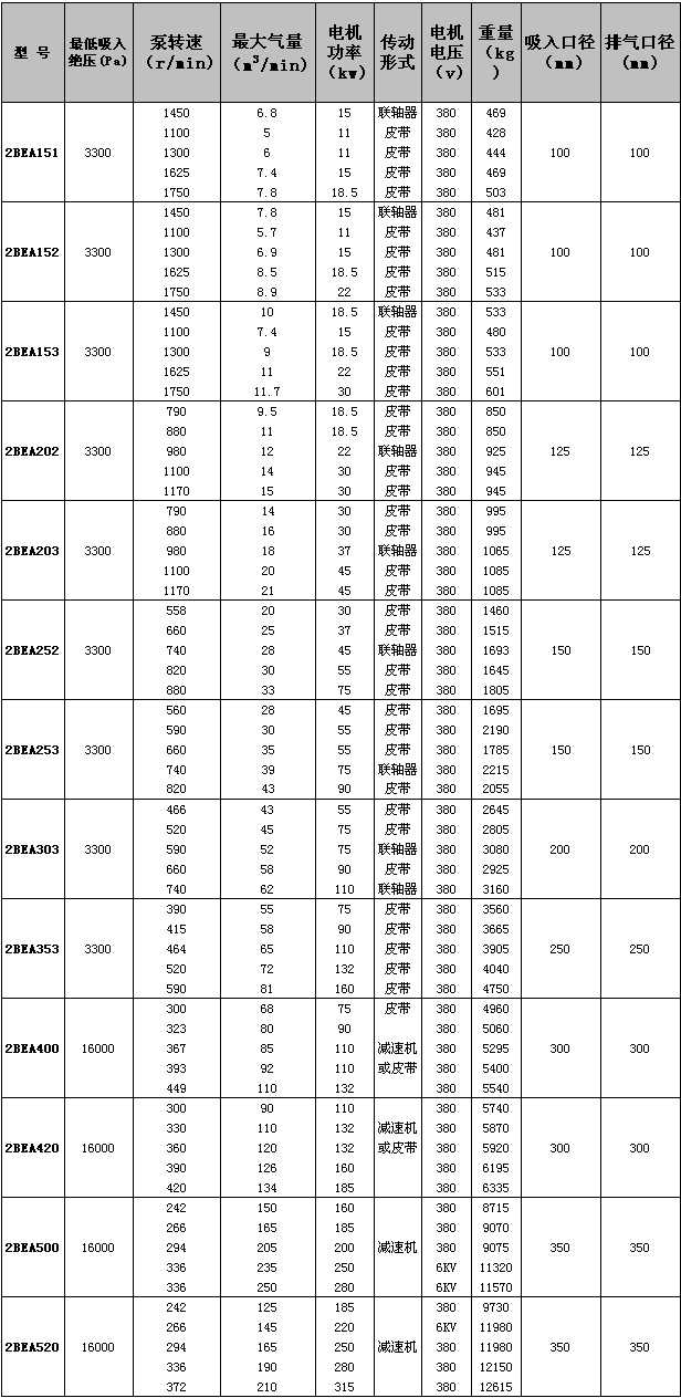 2BEA系列水环真空泵及压缩机,是结合国外先进技术,研制开发的高效节能产品。本系列泵为单级单作用结构形式,具有结构简单,维修方便,运行可靠,高效节能的优点,并能适应排水量大、载荷冲击波动等恶劣工况。相对于SK、SZ系列水环式真空泵的理想替代产品。独特的上置式气水分离器节约空间,并有效降低了噪声。主要应用于造纸、化工、石化、制药、食品、冶金、建材、电气、洗煤、选矿化肥等行业中,主要用来抽除不含固体颗粒、不溶于水、无腐蚀性的气体。