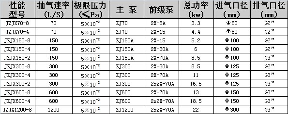 特点及用途 是以罗茨泵为主泵,以旋片泵为前级泵串联而成。其结构紧凑,操作方便。适用于抽除空气及其它无可凝性及无腐蚀性的气体,广泛应用于需要大抽速和高真空的各种真空系统中。如:真空冶炼,电力电容器,变压器,真空浸渍处理,真空镀膜设备中的预抽等。