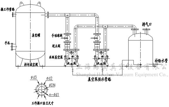真空泵站(又名真空发生装置、真空负压站等)是以一台或二台水环真空泵作为真空获得设备,以真空罐作为真空存储设备的成套系统。对于频繁使用真空源而所需抽气量不太大的场合下,该系统比直接使用真空泵大大节约了能源,并有效提高了真空泵的使用寿命。